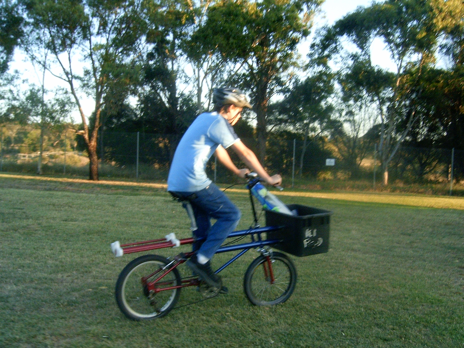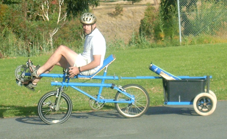 Standard bike, small frame extensions to hold front tub, Trailer. 2 Frame units and tray for load